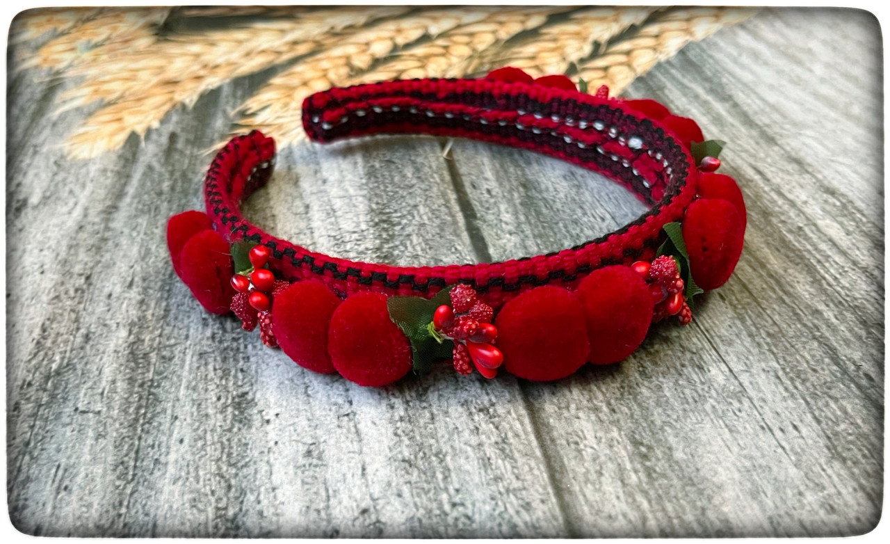 Обруч для волосся ручна робота, виготовлений з штучних квітів, тичинок, тканини та флористичних деталей. Підходить для дітей та для дорослих.